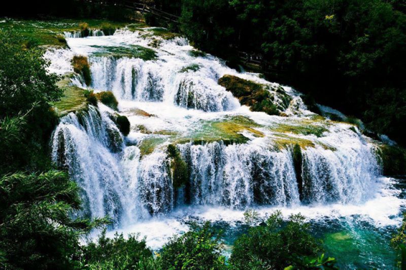 River Krka is a national park and a karst terrain phenomenon with its massive travertine waterfalls. Walking paths among the roaring waterfalls and greenery provide an amazing experience of natural beauty.