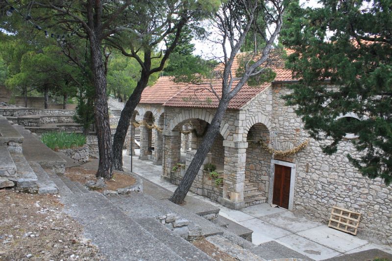 Karavaj Shrine The Shrine of our Lady of Karavaj is located on the hill just above Tisno and hosts the annual celebration on May 26th. The path uphill goes from the old part of town and consists of 214 steps. Photo Gallery